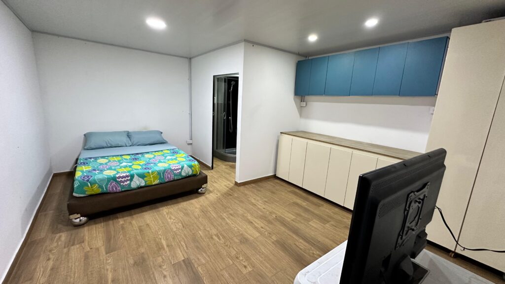 Una cabaña con dos habitaciones independientes, cada una con su baño privado.